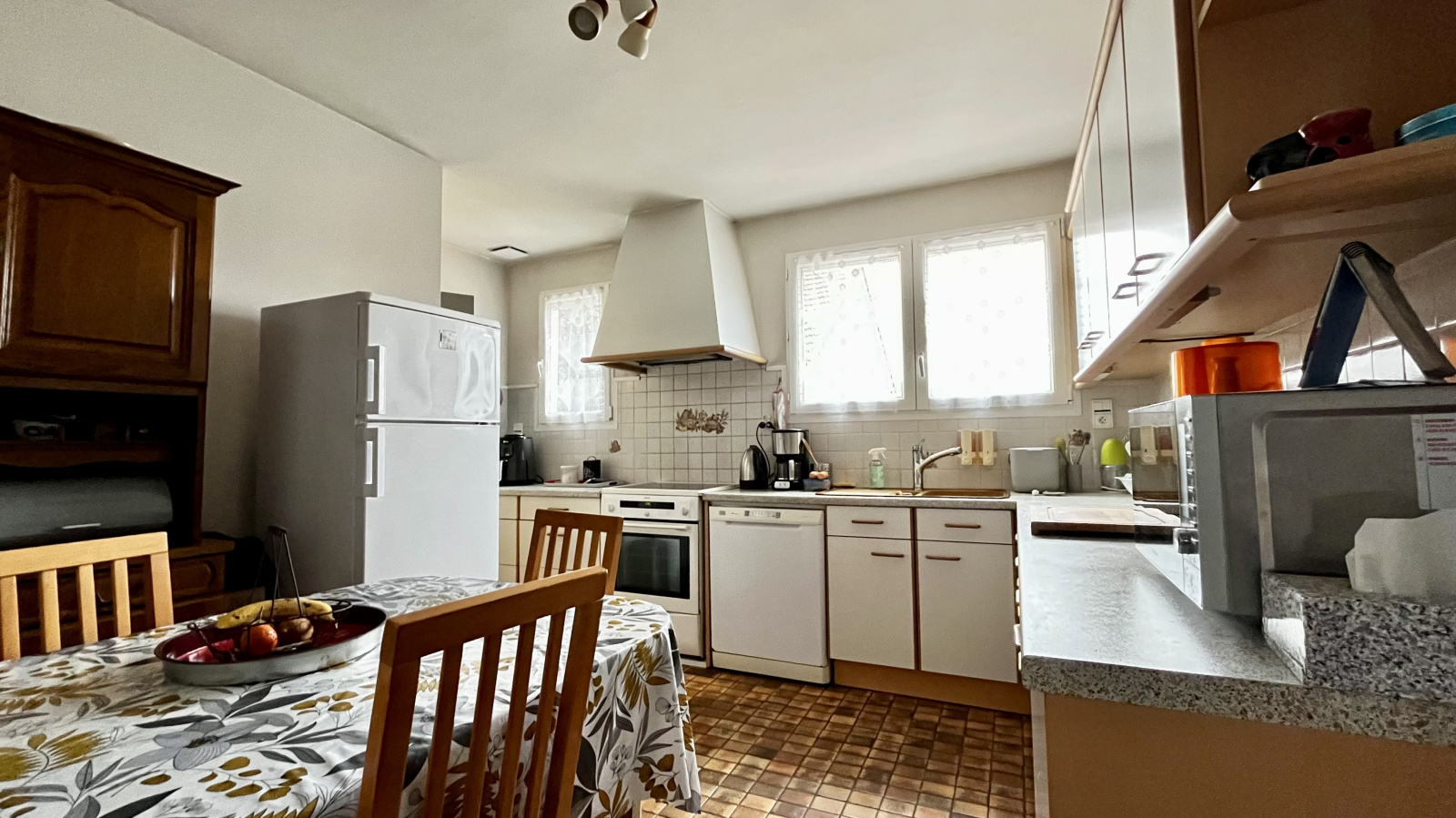 Au sous-sol, vous trouverez une quatrième chambre, une cuisine d’été, un garage, des WC et une pièce de rangement pratique, idéale pour le stockage ou un atelier.