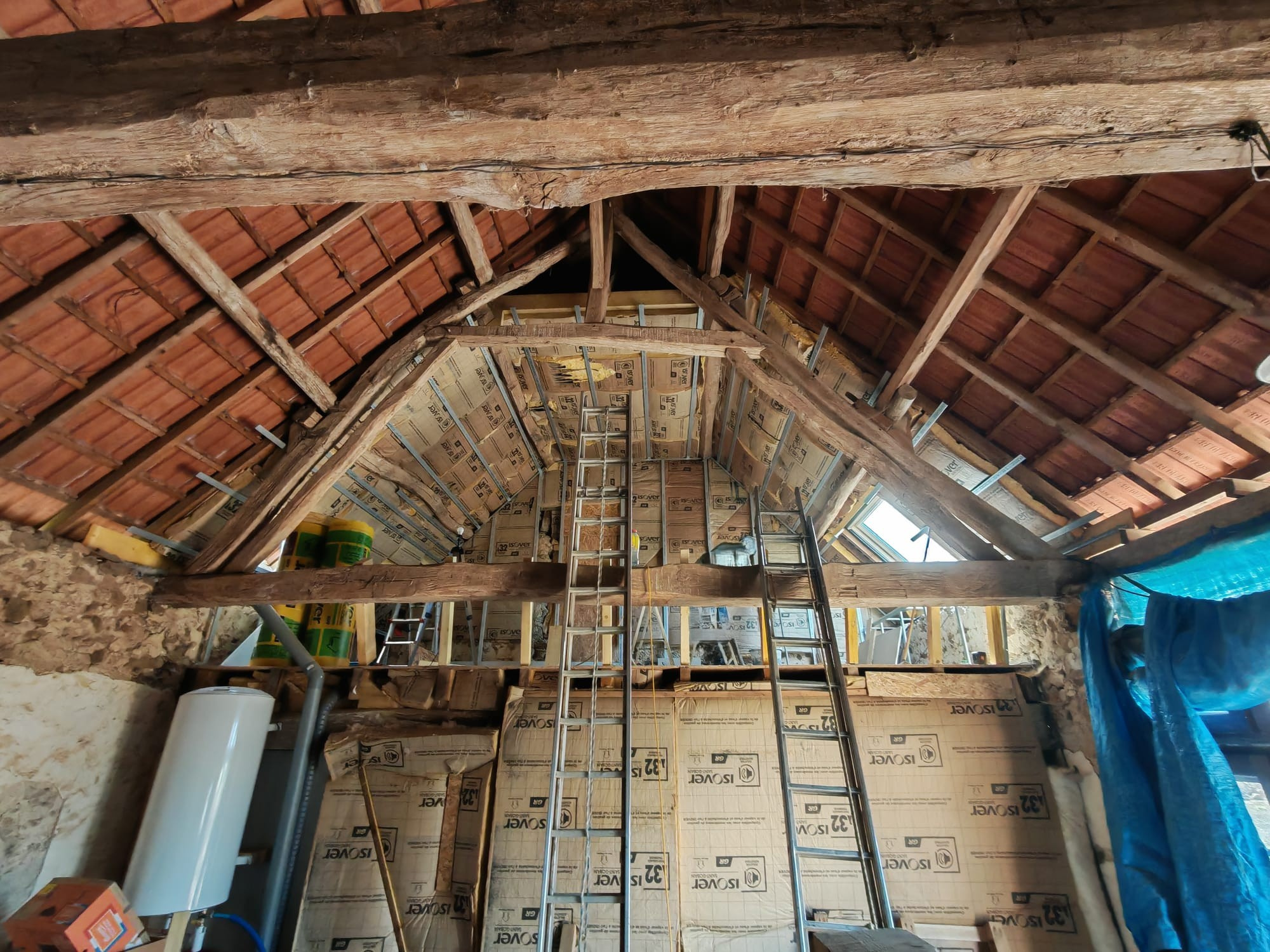 Des travaux sont en cours pour la création d’une salle de bain à l’étage, qui sera terminée avant la vente.