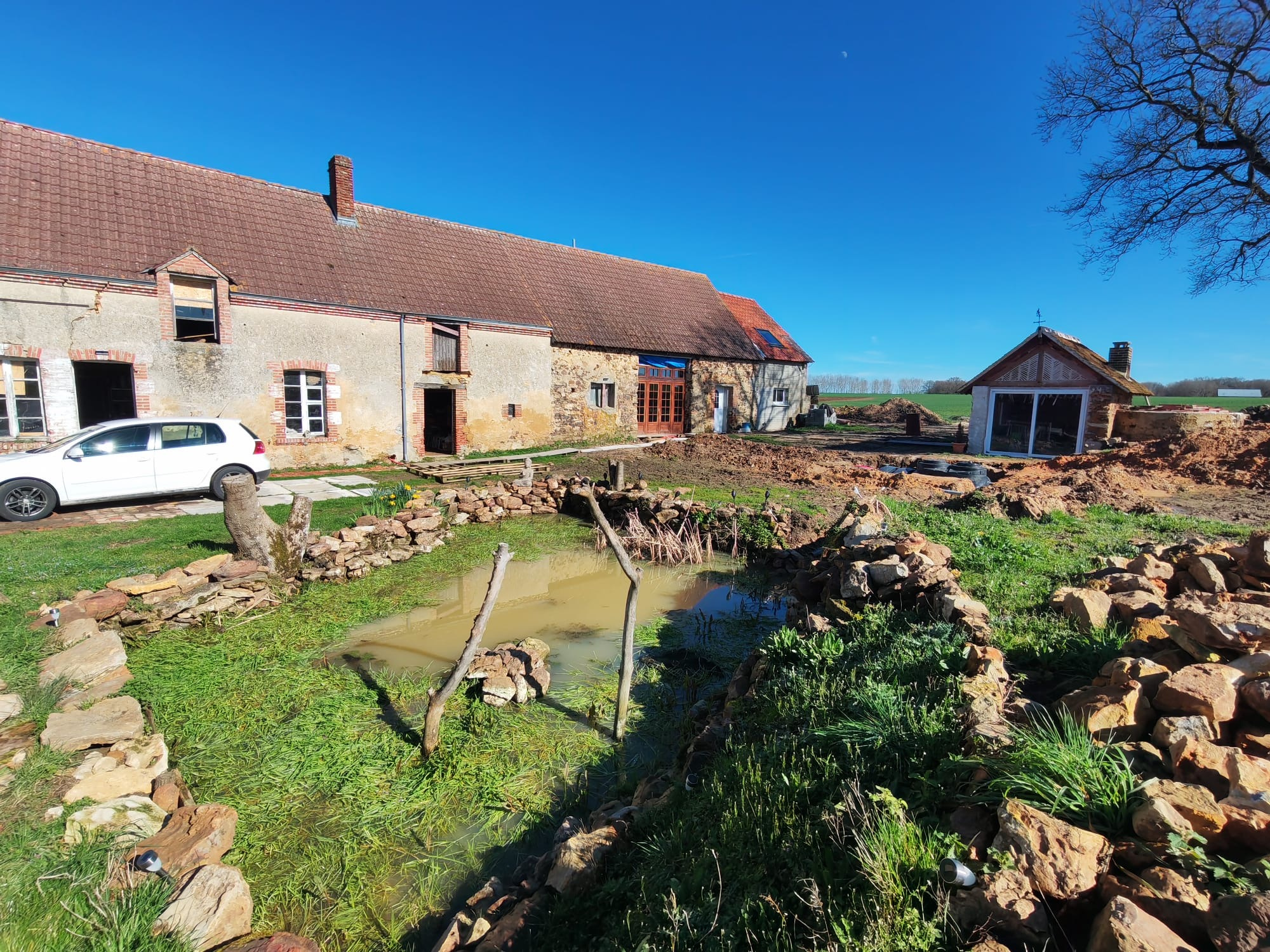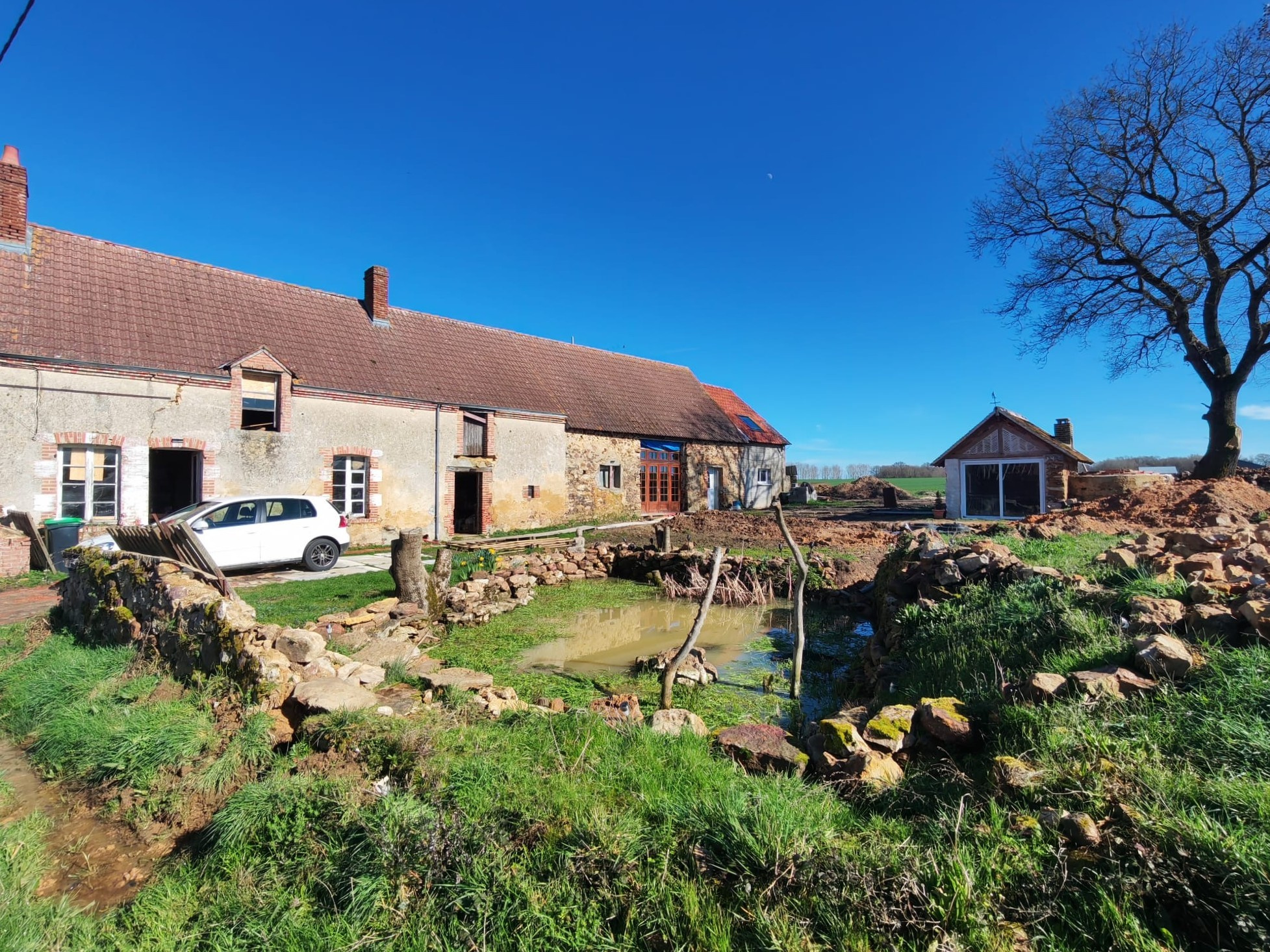 Entourée d’une mare et implantée sur un beau terrain d’environ 2 600 m², cette propriété allie charme et potentiel, aussi bien pour un achat résidentiel que pour un projet d’investissement.