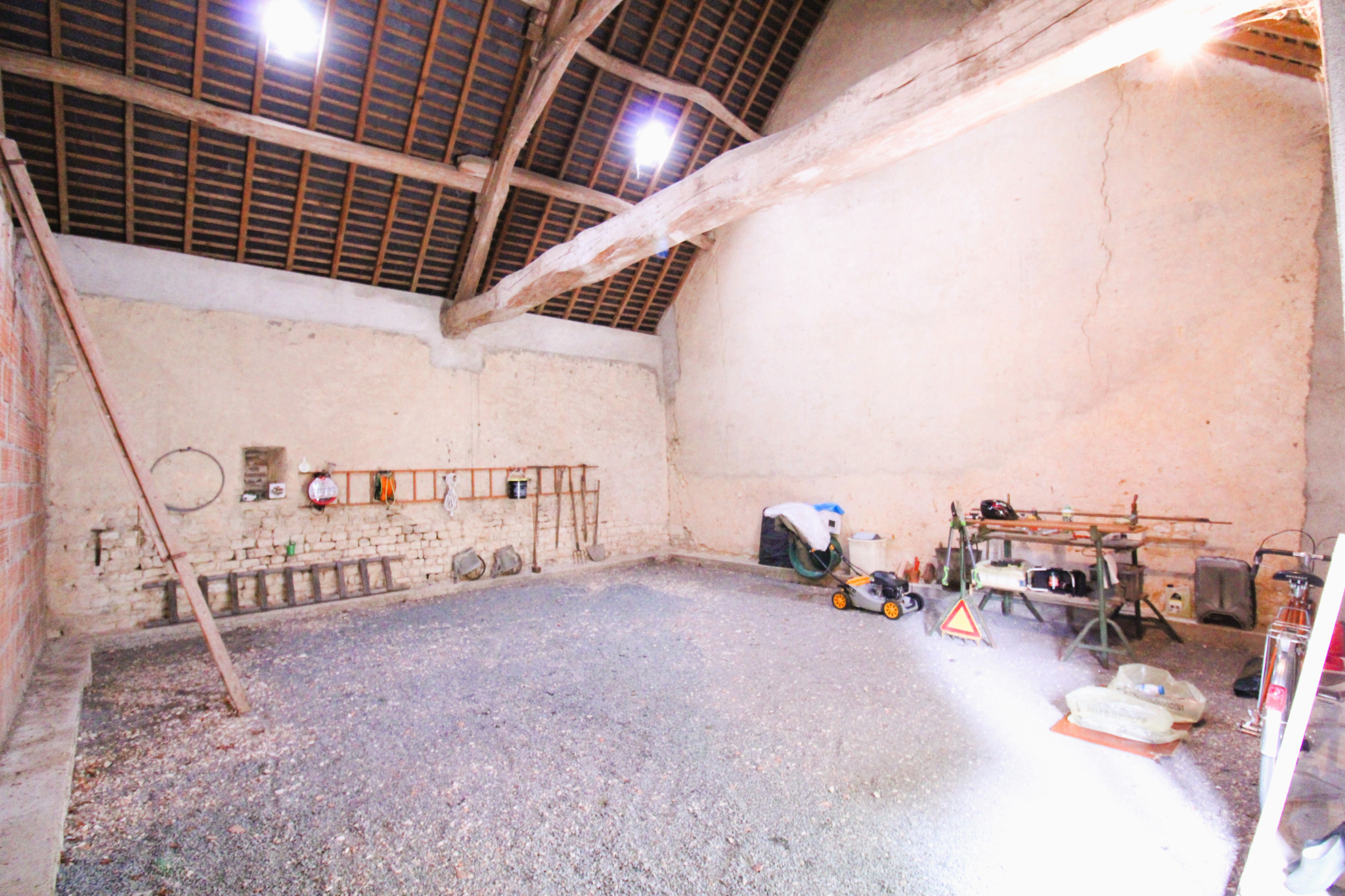 Le tout est complété par un très grand garage attenant, parfait pour accueillir plusieurs véhicules, du matériel, ou pour être aménagé en atelier ou espace de stockage selon vos besoins.